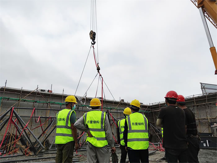 6.为确保.丰县加油站球形网架安装顺利,应有详细的丰县施工组织设计。网架安装必须保证结构的稳定性和不产生的附加变形。